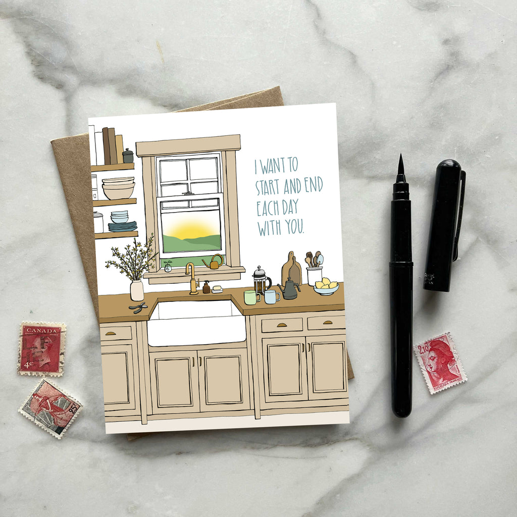 I want to start and end each day with you, says this quiet morning scene in the kitchen. Let's drink coffee, stare at the rising sun and work the puzzles together. And then let's recap our days together at night.